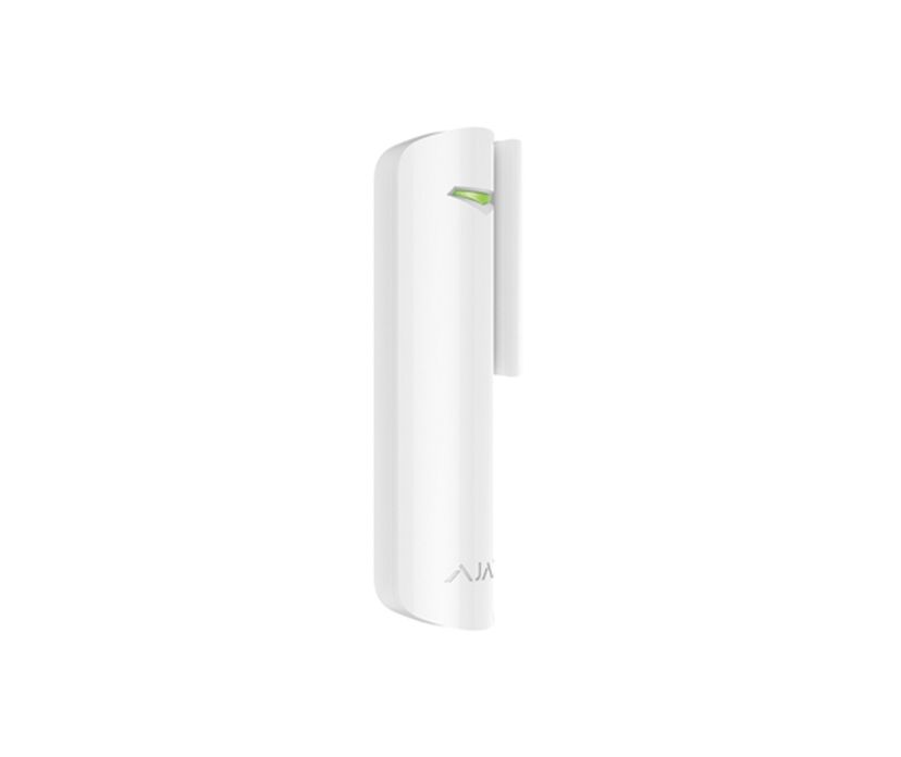 Met het Ajax DoorProtect draadloze magneetcontact kan men deuren en ramen beveiligen. De sensor heeft een bedrade ingang waarmee een extra contact kan worden aangesloten, bijvoorbeeld een roldeur met vloercontact. De magneet is uitgevoerd in de kleur wit en heeft een eigentijds design. Er wordt gebruik gemaakt van krachtige magneten die tot 2 cm van de hoofdunit kunnen worden gemonteerd. Batterijen worden meegeleverd.