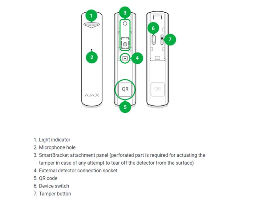 AJAX GlassProtect, wit, draadloze akoestische glasbreukmelder