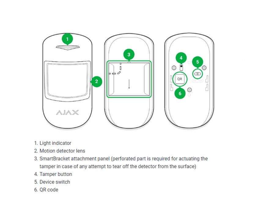 Met deze Ajax MotionProtect PIR melder kunnen mensen worden gedetecteerd. Hierbij is gezorgd voor slimme algoritmes om kleine dieren tot 20 kg te negeren. De detector kan ook onder een hoek van 45 graden worden gemonteerd. De installatie is zeer eenvoudig en snel dankzij de Smartbracket houder. Het gevoeligheidsniveau kan op 3 verschillende standen worden ingesteld. Bewegingen worden gedetecteerd tot maximaal 12 meter afstand.