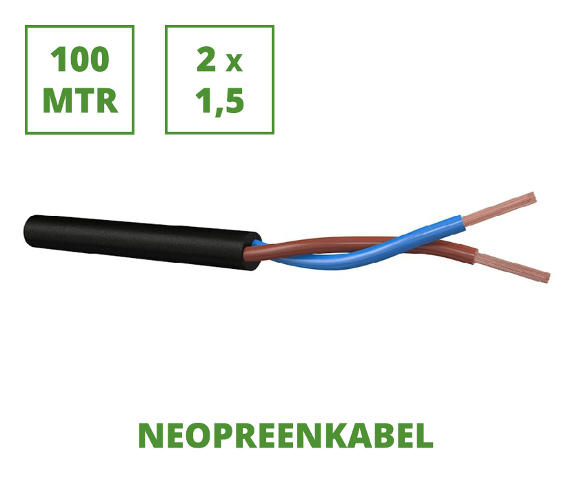 Neopreen 100 mtr. flexibele aansluitkabel 2x1,5 mm²