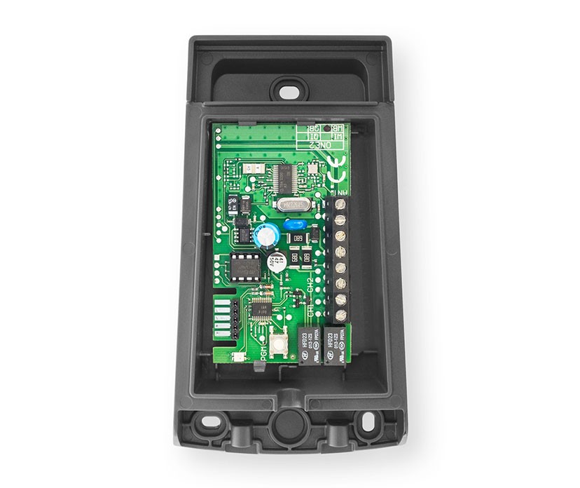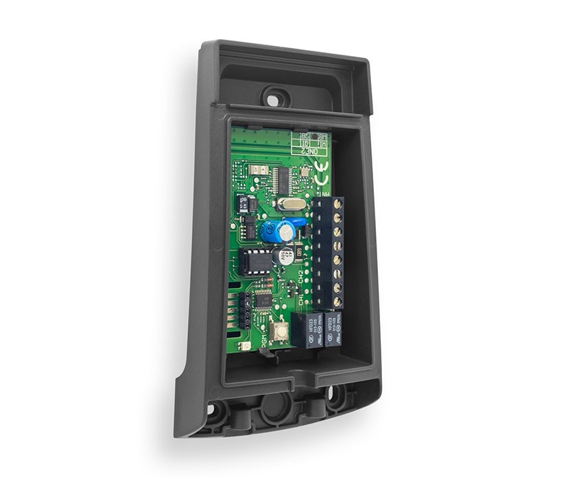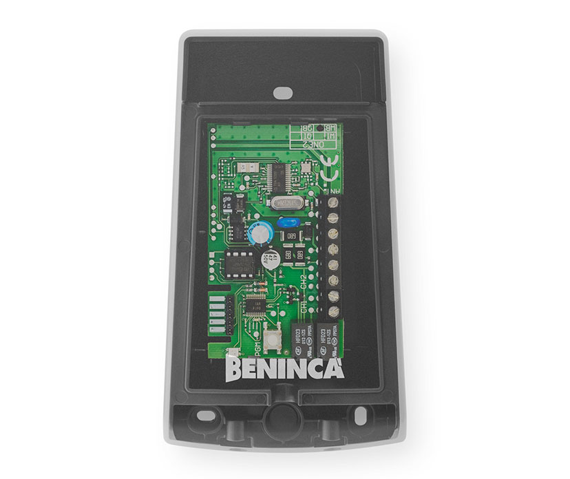 ONE.2WO opbouw ontvanger 2-kanaals is geschikt voor buitengebruik. Deze 433,92 Mhz 2-kanaals opbouwontvanger met een unieke rolling code wordt gebruikt voor de BENINCA zenders TO.GO (rolling code, zelflerend, dipswitch), IO, APPLE. In het geheugen kunnen standaard 512 zenders worden opgeslagen, dit is eventueel uit te breiden.