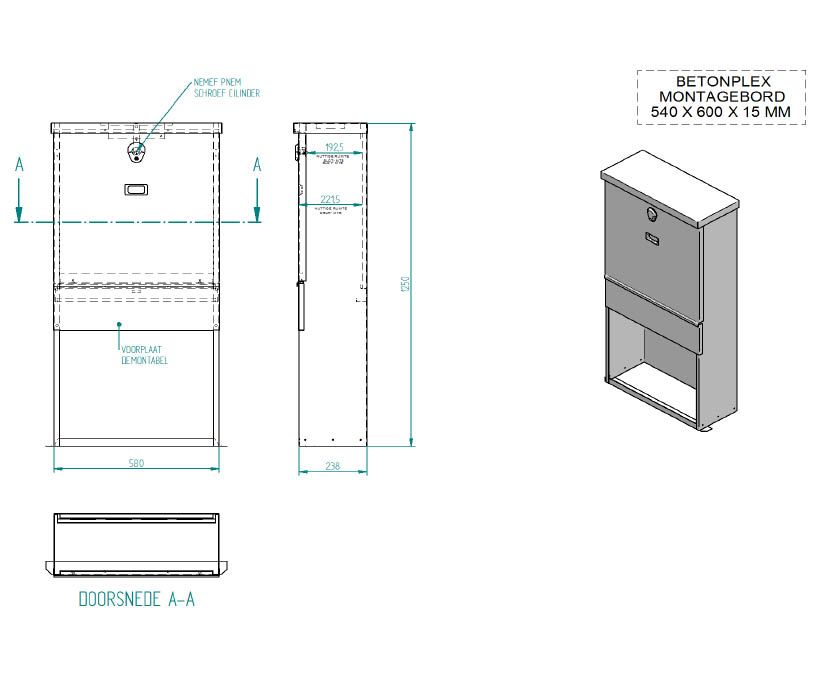| Afmetingen | 1250x580x238 mm (hxbxd) |