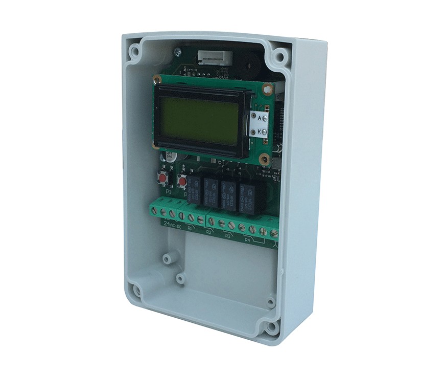 ERONE 4-kanaals 24V ontvanger met display 433,92 Mhz en unieke rolling code. Deze ontvanger werkt in combinatie met alle ERONE zenders en het draadloos codepaneel GALEOR. Het uitgangsrelais kan aangesloten worden op verschillende systemen. In het geheugen kunnen 100 handzenders worden opgeslagen.