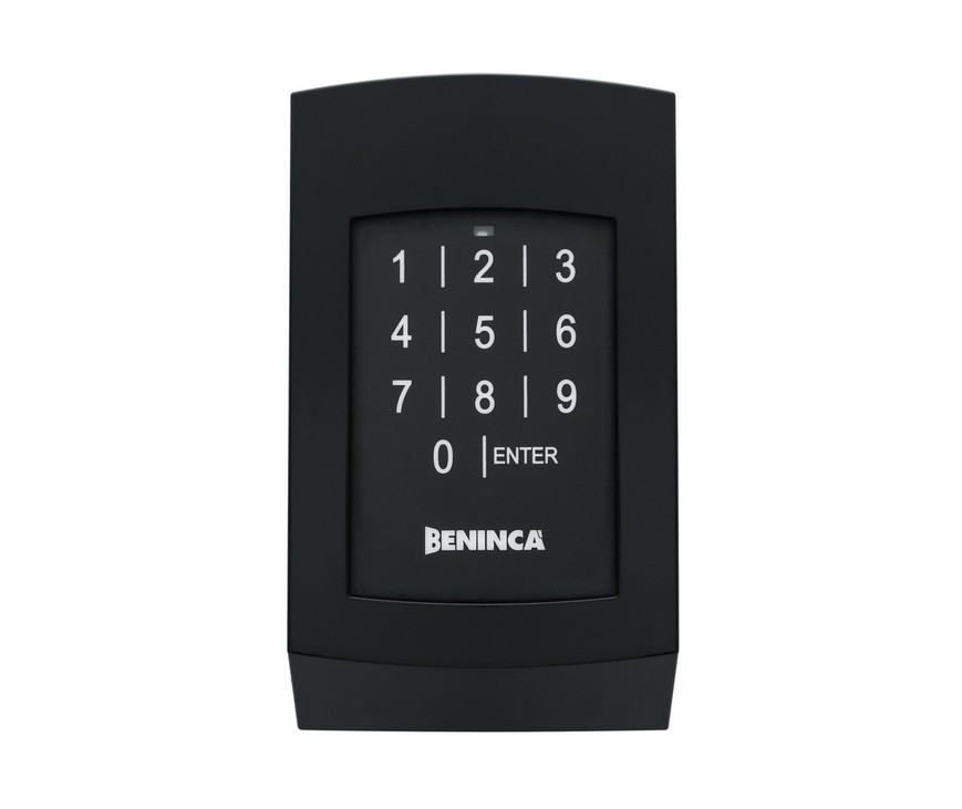 Draadloos 433,92 Mhz codepaneel met membraan toetsen en een geheugen voor 254 codes. Het codepaneel (rolling code) werkt in combinatie met de ingbouwde ontvangers in de BENINCA sturingen en de ontvanger ONE.2WB en ONE.2WI van BENINCA.