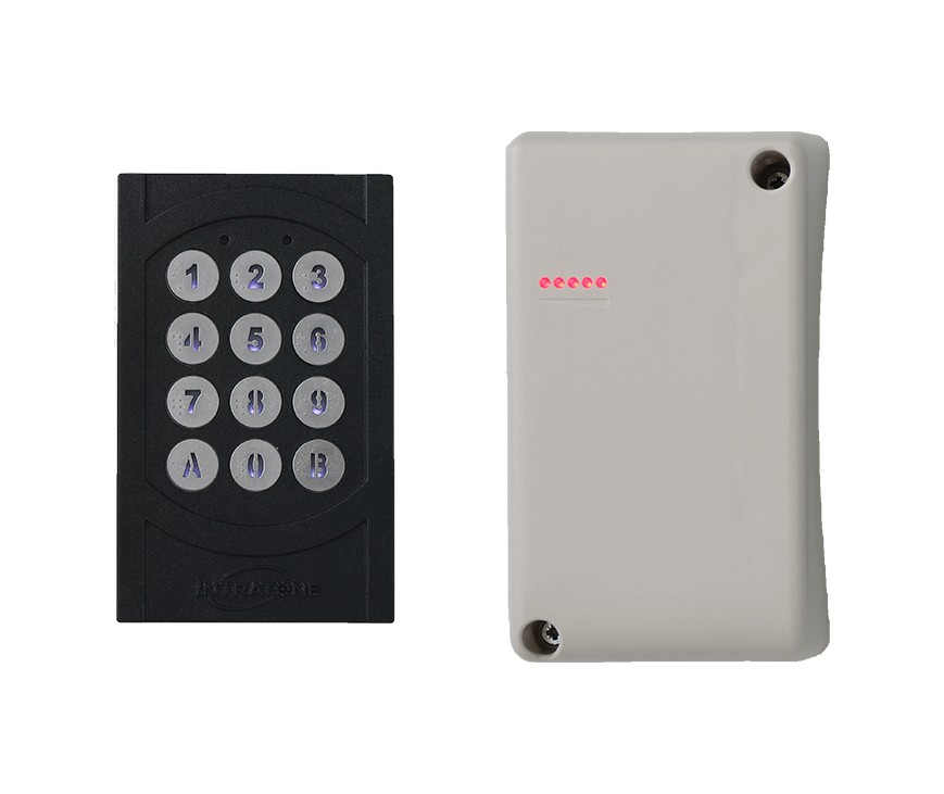 Vandalismebestendig codepaneel met Intrabox HF kit GPRS data module en ingebouwde ontvanger. De gebruiker wordt de toegang verleent door het invoeren van een code, terwijl een andere gebruiker toegang krijgt via zender of telefoon. De module is geschikt voor het bedienen van twee deuren en tot 10.000 gebruikers. Het vandalismebestendige codepaneel is voorzien van toetsverlichting en LED-verlichting ter indicatie van het GPRS-netwerk.