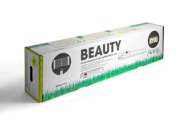 Deze complete elektromechanische set voor het openen van draaipoorten heeft een dubbelzijdige blokkering en is voorzien van een soft-stop systeem. De BEAUTY poortopener kenmerkt zich door een innovatief design met een handige kabelinvoer, waardoor de motor snel en eenvoudig is te monteren. Door stroommeting kan een eventuele inklemming direct worden gemeten en loopt de motor terug, het inklemmingsgevaar is hierdoor geweken. De motor heeft een laag geluidsniveau en kan bij stroomuitval handmatig ontgrendeld worden. De standaard ingebouwde ESA module zorgt ervoor dat het energieverbruik zeer laag is (energielabel A). De digitale motorsturing voor deze poortopener is zelflerend en eenvoudig te programmeren. De BEAUTY poortopener van BYOU is een origineel Beninca product en wordt geproduceerd in de Beninca fabriek in Italië.