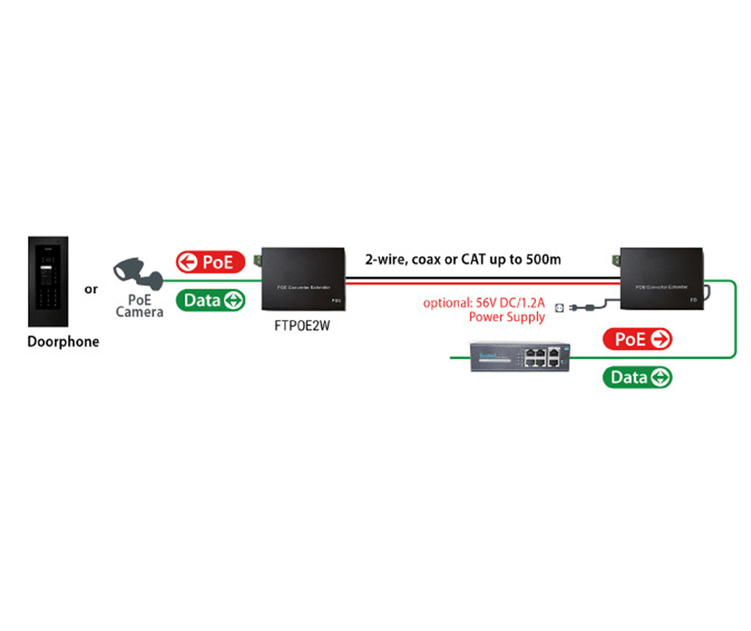 Wil je een Fasttel video intercom op je netwerk aansluiten, maar heb je niet de juiste netwerkbekabeling? Dan is de 2-draads Ethernet PoE converter de perfecte oplossing!