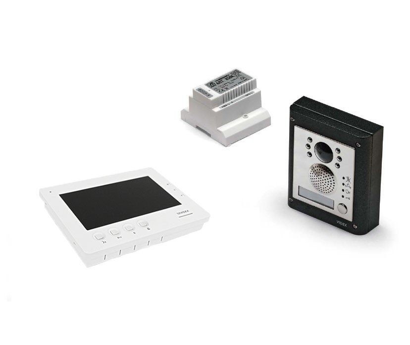 Complete VIDEX 4000 serie video intercom set met handenvrije binnenpost voorzien van een groot 7'' scherm. De opbouw buitenpost is voorzien van 1 beldrukker, luidspreker en camera met infrarood LED verlichting. De video intercom 6K7 binnen is voorzien van een kleuren monitor, 4 drukknoppen en 2 indicatie LED's. Het volume van de oproeptoon, de helderheid en het contrast zijn instelbaar.