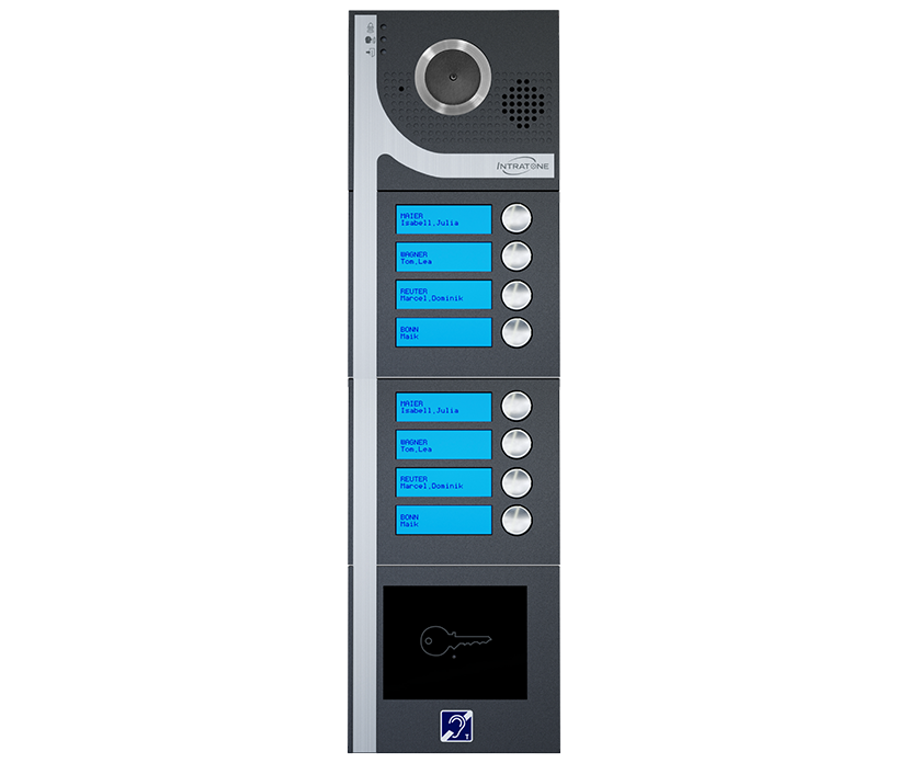 Elke beldrukker is voorzien van een compact LCD-scherm met digitale naamweergave. Hierdoor zijn papieren etiketten en handmatige aanpassingen overbodig. Naamwijzigingen kunnen snel en efficiënt op afstand worden doorgevoerd via de Intratone-app of de beheerderswebsite, zonder fysieke toegang tot het toestel.