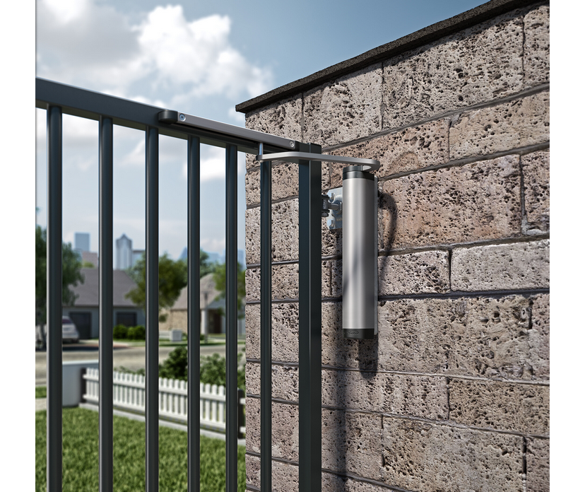 De regelbare sluitsnelheid en eindslag zorgen ervoor dat de poort op de gewenste manier sluit, afgestemd op de situatie en het gebruik. Bovendien biedt de sluitkracht over de volledige 180° openingshoek maximale flexibiliteit.