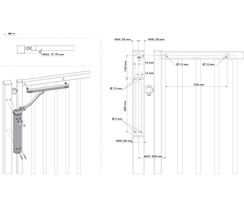 Dankzij de instelbare sluitsnelheid en eindslag bepaal je zelf hoe snel en krachtig de poort sluit. De ingebouwde voorspanning zorgt ervoor dat de sluitwerking soepel en betrouwbaar blijft.