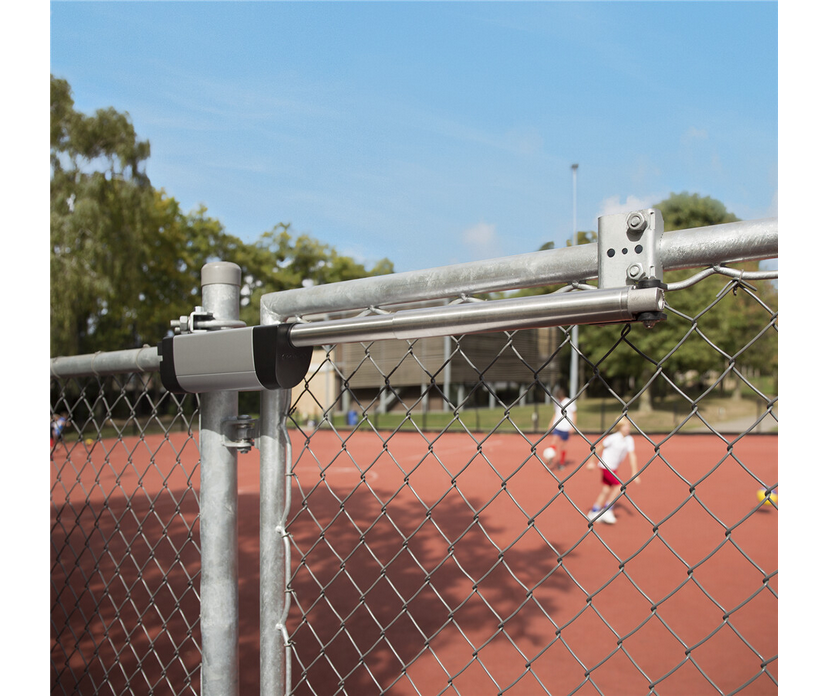 De poortsluiter is geschikt voor zowel links- als rechtsdraaiende poorten en wordt geleverd met een montagebeugel die hem perfect laat aansluiten op gaashekwerken.