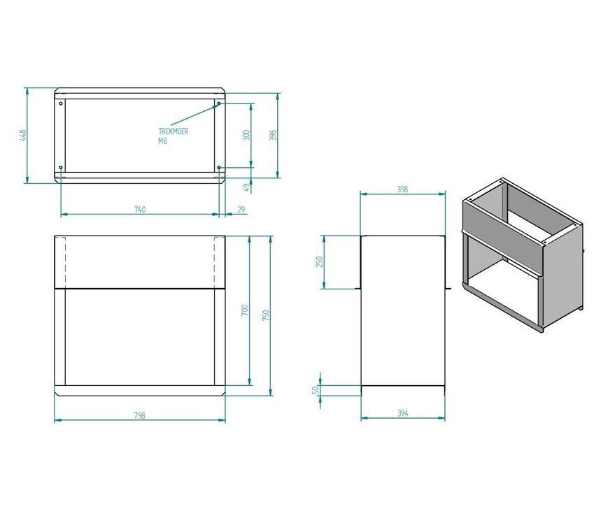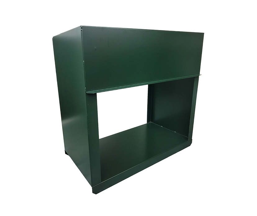 Meterkastfundatie voor straatkast 400806. Materiaal RVS304 gecaot in RAL6009. De afmetingen zijn 750x800x400 mm.