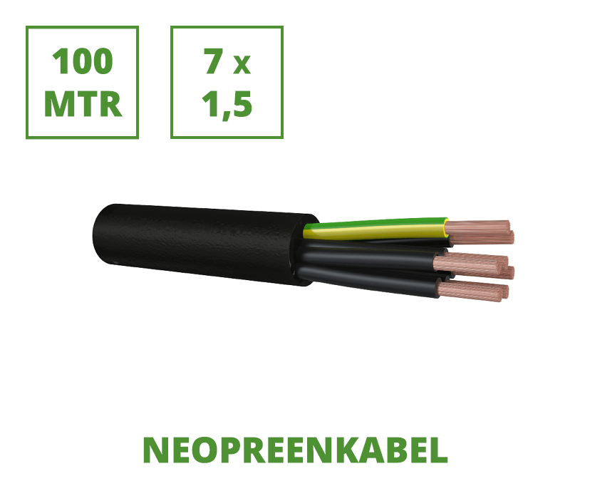Neopreen 100 mtr. flexibele aansluitkabel 7x1,5 mm²