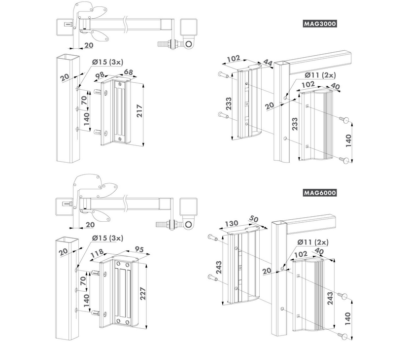 Installatie is eenvoudig en snel dankzij de vijf voorgeboorde bevestigingspunten en de Quick-Fix montage. De MAG6000-versie van dit slot garandeert een minimale houdkracht van 6000N (oftewel 600 kg), en werkt op 460 mA bij 12V of 230 mA bij 24V DC.