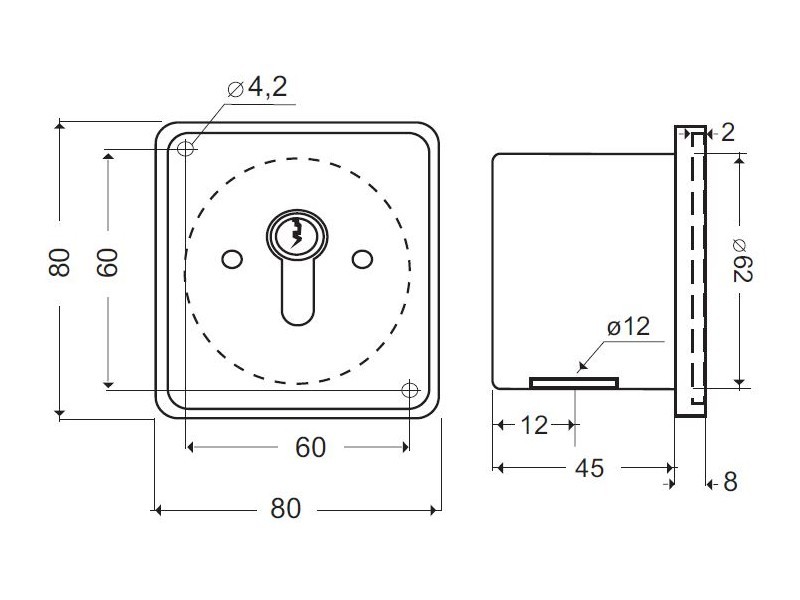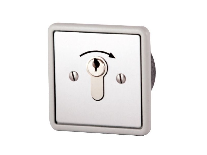 Sleutelschakelaar inbouw met minimale diepte en europrofielcilinder. Voorzien van aluminium frontplaat en 1 pulscontact. De sleutel moet in verticale positie verwijdert worden.