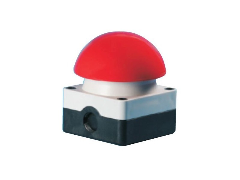 Slagvaste drukknop met rode knop. Waterdicht en geschikt voor buitengebruik.