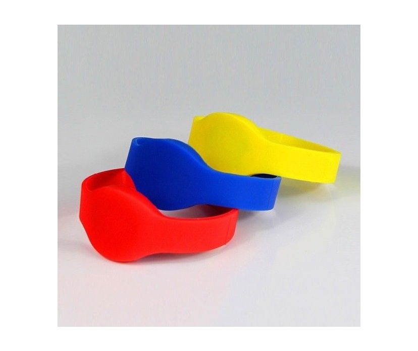 Waterbestendige proximity armband 125 Khz in polycarbonaat voor proximitylezer. Geleverd in de kleuren blauw, geel en rood.
