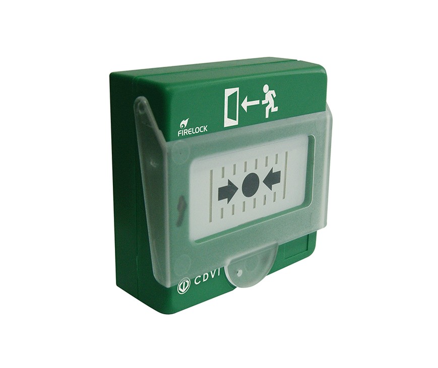 Nooddrukknop BBGP2V opbouw van Cdvi met membraam. De drukknop is voorzien van een deksel en heeft 2 contacten. Bij een noodgeval tilt u het dekseltje op en duwt u in het midden van het glas op de zwarte stip. Hierdoor wordt de stroomtoevoer afgebroken en zal de deur ontgrendeld worden. De drukknop kan gereset worden met behulp van een speciale sleutel die mee wordt geleverd.