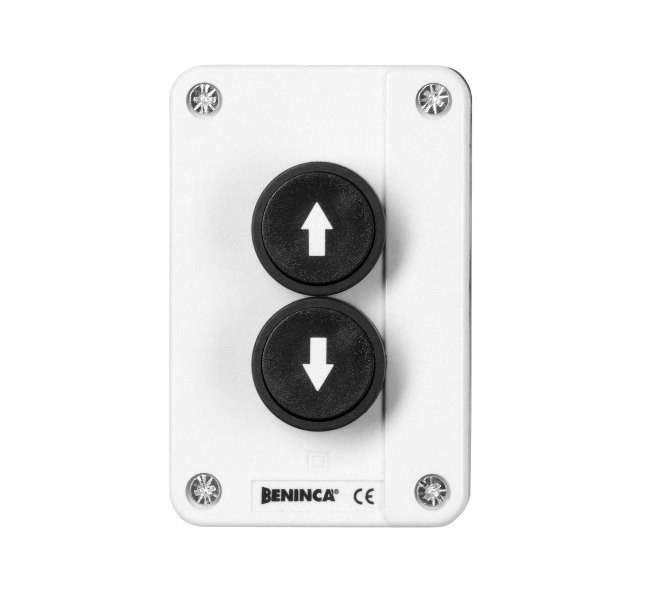 Bedieningspaneel opbouw met twee stevige drukknoppen op en neer. Het paneel heeft 2x een NO contact.