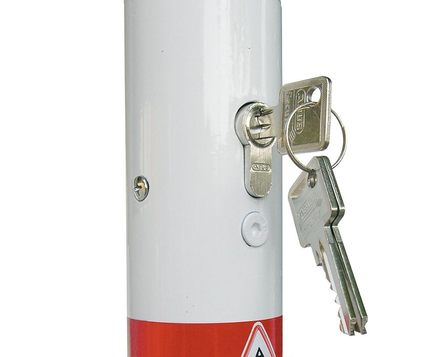 Parkeerpaal rond 76 mm, inklapbaar, met europrofielcilinder