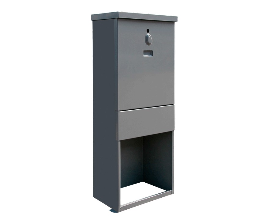 Deze middelhoge RVS straatkast is geschikt als buitenbehuizing en voorzien van een montagebord, steekdeur en vaste fundatie. De straatkast wordt geleverd inclusief slot en een sleutel. De voorplaat is demontabel. Het materiaal is gepoedercoat in RAL 7037. De bruikbare inbouwruimte is ca. 80% van de aangegeven diepte.