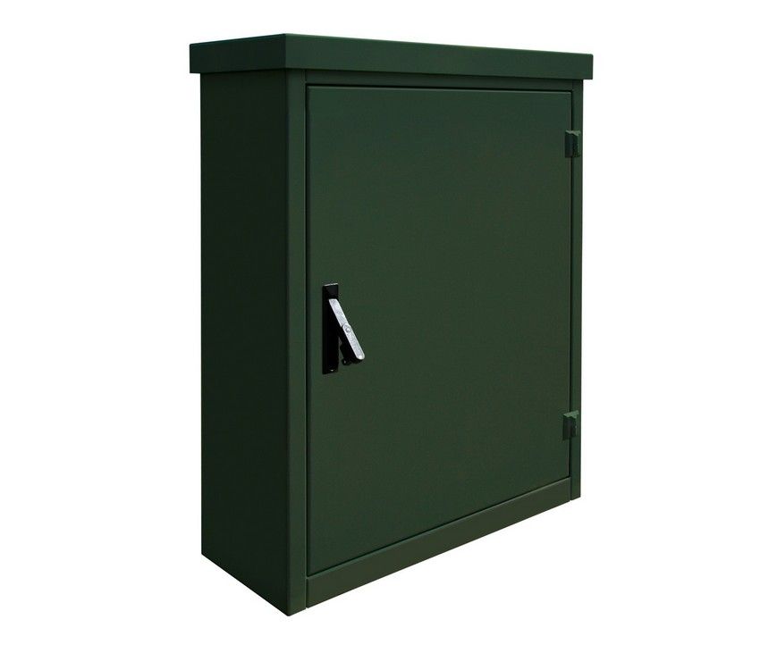 Deze meterkast is gemaakt van weersbestendig RVS304 gecoat in donkergroen RAL6009. De kast heeft een hoogte van 1000 mm, breedte van 800 mm en diepte van 400 mm. Ongeveer 80% hiervan is nuttig te gebruiken inbouwruimte. Deze kast is voorzien van een montagebord en scharnierende deur met slot en sleutel.
