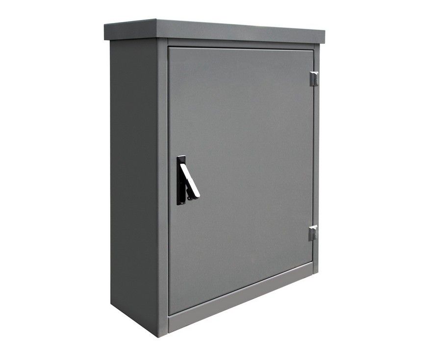 Deze straatkast, ook wel buitenkast genoemd, is gemaakt van RVS304 en gecoat in RAL7037. De kast heeft een hoogte van 1000 mm, breedte van 800 mm en diepte van 400 mm. De nuttige inbouwruimte is ca. 80% van de weergegeven diepte. De behuizing is voorzien van een scharnierende deur met slot en montagebord.