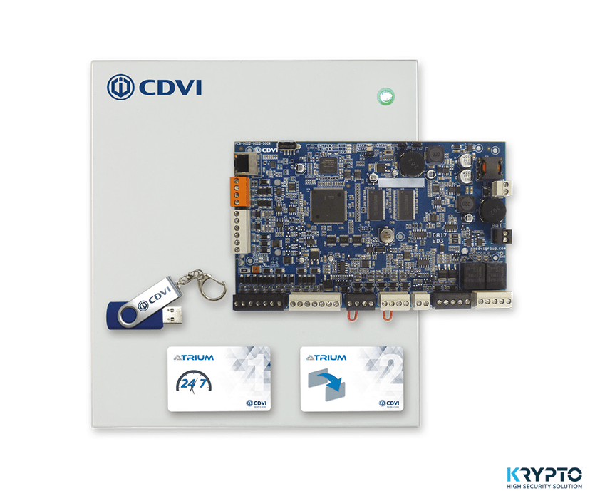De Atrium Krypto is een high-security toegangscontrolesysteem door het gebruik van Mifare/DesFire EV2 protocol. Het Krypto assortiment bestaat uit een nieuwe generatie lezers, codepanelen en badges. Deze zijn voorzien van een 256-bit versleutelde encryptie. Het toegangscontrolesysteem heeft een capaciteit tot 10.000 gebruikers en 500 deuren/1000 lezers. Het OSDP protocol heeft naast de verhoogde veiligheid ook de mogelijkheid tot een langere kabelstand met een maximum van 1200 meter.