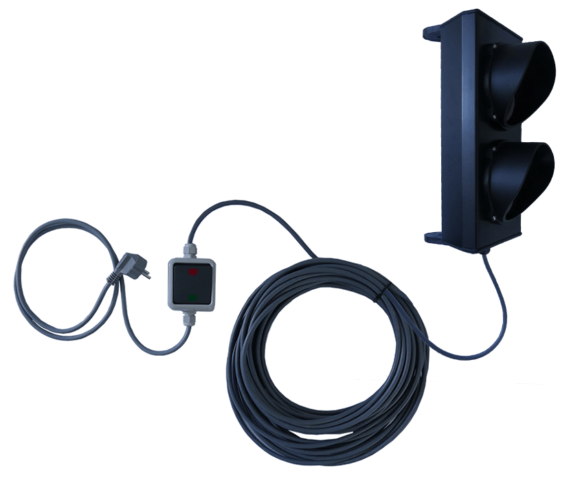Het Plug & Play verkeerslicht is standaard voorzien van een snoer van 20 meter. Het verkeerslicht kan door middel van de steunen aan de wand worden gemonteerd.
