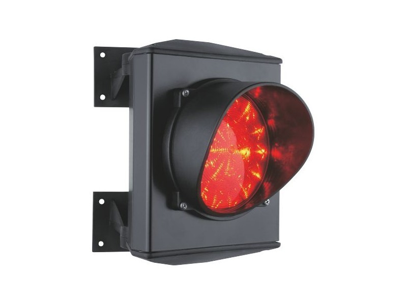 Verkeerslicht 230V met 1 rode lens Ø 120 mm. Geleverd met 1 gloeilamp van 40W en grote fitting E27. De behuizing is gemaakt van aluminium voorzien van polyamide steun. Het verkeerslicht is 200° draaibaar.