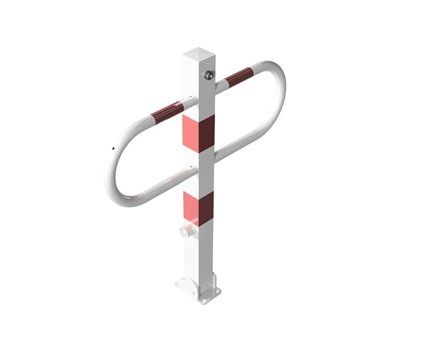 De volbad verzinkte handmatige parkeerbeugel gecoat in rood/wit is een goede oplossing om een parkeerplaats af te sluiten. De rood met witte parkeerbeugel is voorzien van een driehoekslot. De parkeerbeugel ook wel verkeersbeugel genaamd is eenvoudig in- en uit te klappen. Het vergrendelen van de handmatige parkeerbeugel gaat automatisch door middel van het zelfsluitende slot. De witte coating is voorzien van rode reflecterde markering. Hierdoor is de parkeerbeugel goed zichtbaar, zelfs in het donker.