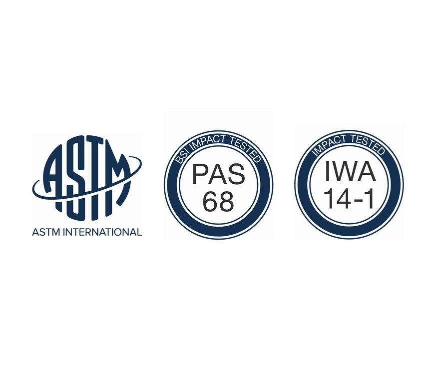 De MAXIMUM rampaal is bestand tegen een botsing met een voertuig van 7500 kg gelanceerd met een snelheid van 48 km/u en heeft de volgende certificering: IWA 14-1: 2013 V / 7200 [N3C] / 48/90: -0.8 / PAS68: 2013 V / 7500 [N3] / 48/90: -0.5 / ASTM F2656 Rating C730 / 7200 - P1 (-0,8).