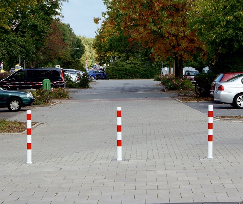 Deze ronde parkeerpaal 76 mm is instortbaar in beton. De parkeerpaal is volbad verzinkt en uitgevoerd in de kleur wit/rood. De rode markering is reflecterend, waardoor de instortbare parkeerpaal in het donker goed zichtbaar is. De totale lengte van de parkeerpaal is 1300 mm. De parkeerpaal steekt 900 mm boven de grond uit.