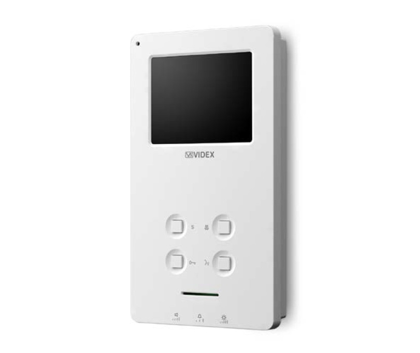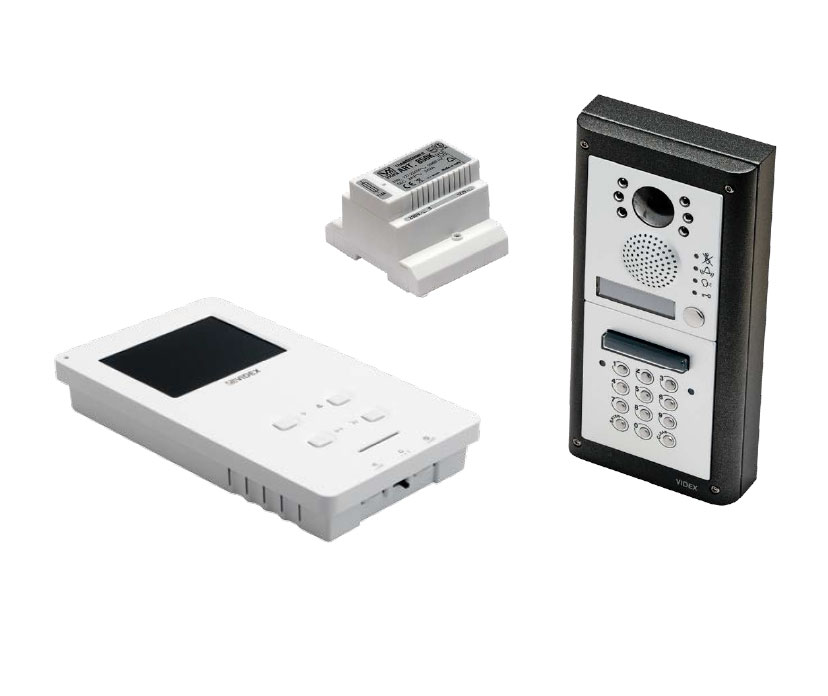 Complete VIDEX 4000 serie video intercom set met handenvrije binnenpost voorzien van 3,5'' scherm. De opbouw buitenpost is voorzien van een codepaneel, 1 beldrukker, luidspreker en camera met infrarood LED verlichting. De video intercom 6K3 binnen is voorzien van een kleuren monitor, 4 drukknoppen en 2 indicatie LED's. Het volume van de oproeptoon, de helderheid en het contrast zijn instelbaar.