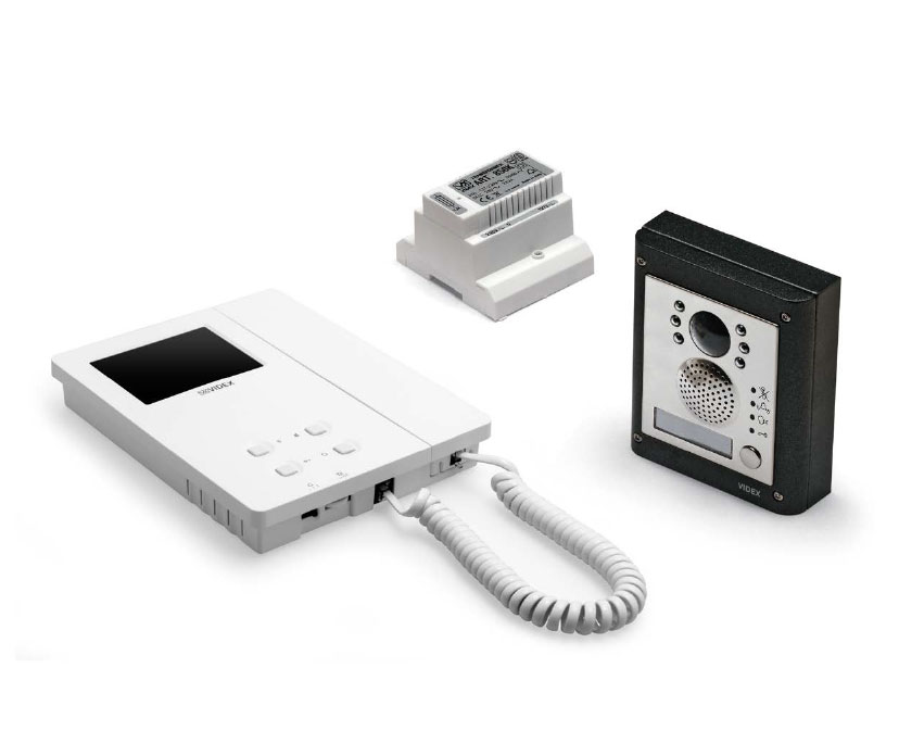 Complete VIDEX 4000 serie video intercom set voorzien van 3,5'' scherm. De opbouw buitenpost beschikt over 1 beldrukker, luidspreker en camera met infrarood LED verlichting. De video intercom 6K2 binnen is voorzien van een kleuren monitor, 4 drukknoppen en 2 indicatie LED's. Het volume van de oproeptoon, de helderheid en het contrast zijn instelbaar.